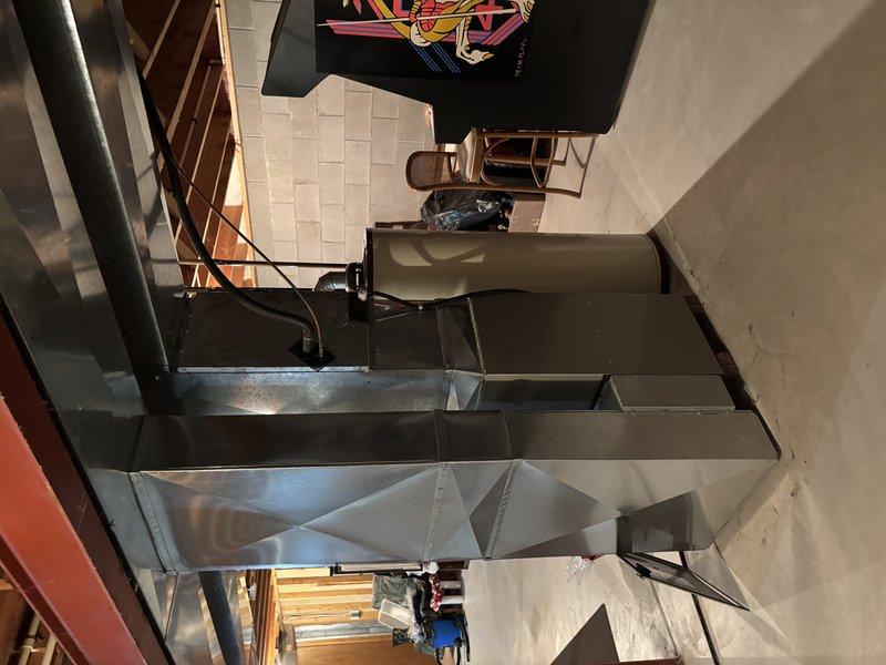 Successfully completed installation of two Lennox EL297E 70K BTU furnaces in basement utility room. Installation included new media cabinets while reusing existing compatible return ducts. Proper venting was established with PVC intake and exhaust pipes. Both units were installed to manufacturer specifications and are functioning optimally.