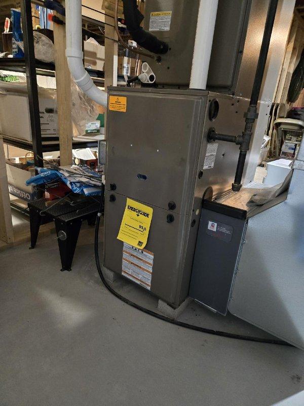Performed fall preventative maintenance on Carrier furnace system recently acquired by customer. Completed full tune-up service, including system inspection of furnace components, associated ductwork, and humidifier/air treatment unit. Identified and replaced dirty air filter to ensure proper system operation and efficiency for the upcoming heating season.