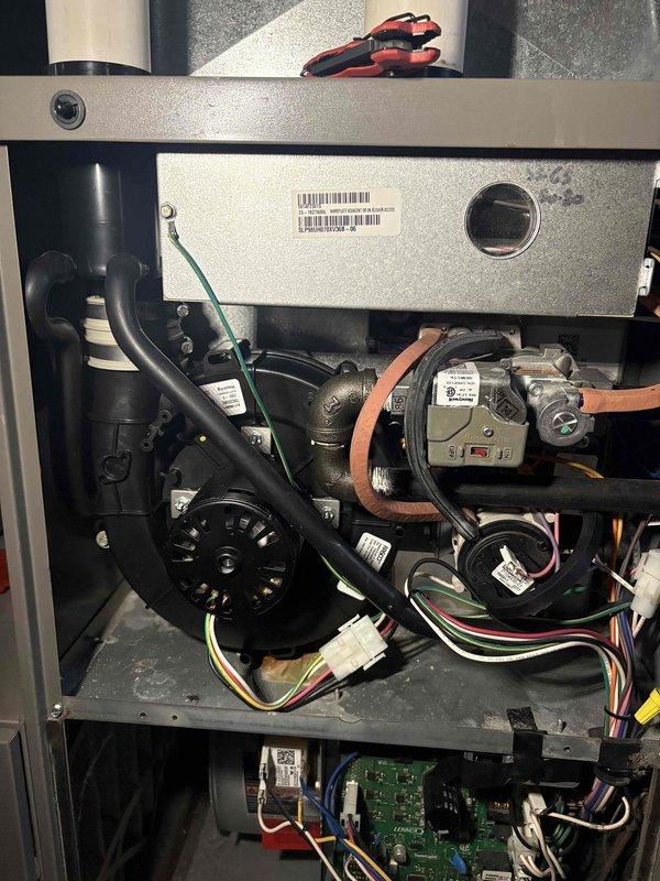 Completed replacement of faulty inducer motor and dual pressure switch on HVAC system to restore proper furnace operation. Diagnostic testing confirmed successful installation with all safety circuits functioning correctly. Customer provided with temporary space heaters during repair process.