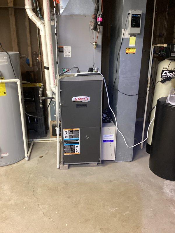 Performed standard furnace tune-up on Lennox unit. System in acceptable condition with recently changed filter. Completed routine cleaning and inspection with no issues identified.