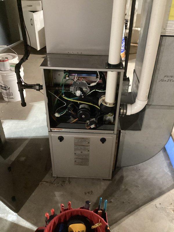 Performed scheduled preventive maintenance on residential furnace under CCC Quality Plan. Inspected control board connections and verified proper operation of heat delay function. Examined refrigerant lines and service valves, confirming system integrity with no signs of leakage or damage.