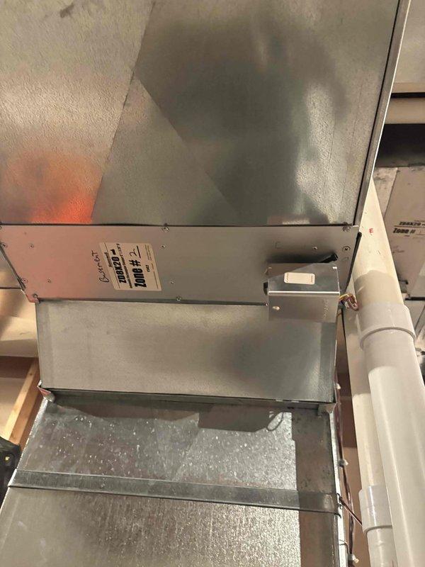Responded to an after-hours no heat call for system under 10 years old. Diagnosed and replaced failed batteries in thermostat and repaired malfunctioning zone damper. Verified proper system operation before departure with heat restoring to all zones.