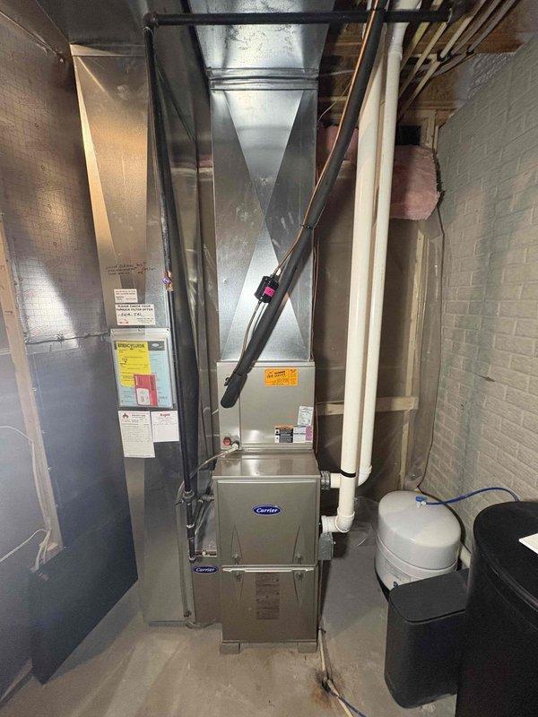 Completed monthly maintenance service on Carrier furnace under prepaid CCC Quality Plan. Performed full system inspection with all components functioning properly. Replaced 16x25x4 filter and documented system condition with photos showing proper installation of ductwork, venting, and associated components.