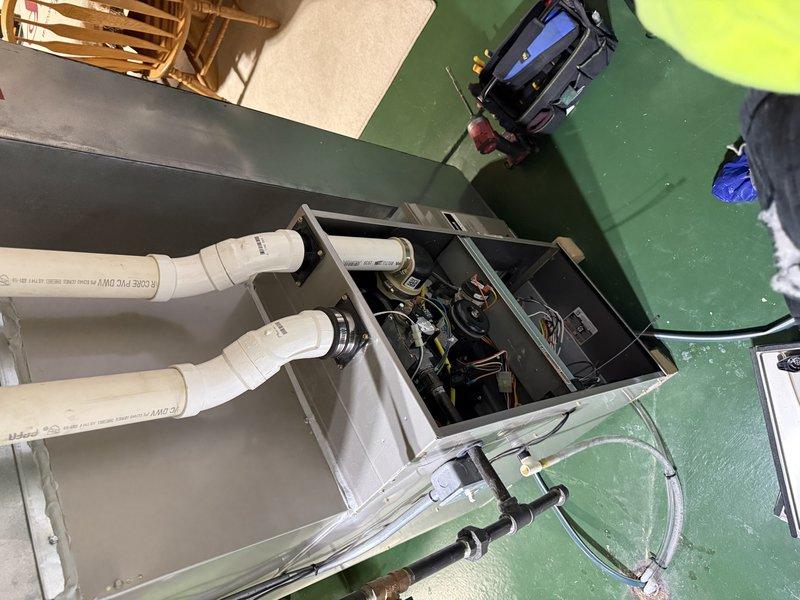 Performed scheduled maintenance on customer's furnace system. Inspected condensate drain assembly, checked all connections and verified proper drainage. System operating within normal parameters with no issues identified.