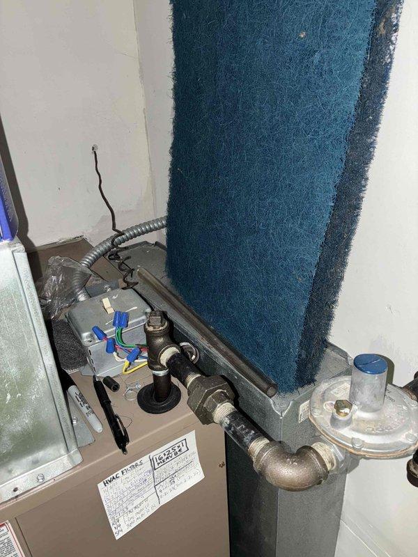 Completed full system replacement including installation of Lennox EL297E 45K furnace, ML13KC1 2-ton condensing unit, and 24B-71 cased coil. Reused existing Nest thermostat, 40ft lineset, and cold air drop, while adding a new 16x20x1 filter rack. Installed proper 3" PVC venting through attic, raised new concrete slab for outdoor unit, and verified system level and pressure readings to ensure optimal performance.